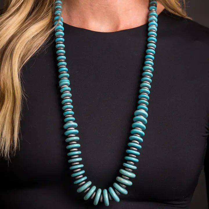 36"" Turquoise and Faux Navajo Pearl Graduated Disc Necklace