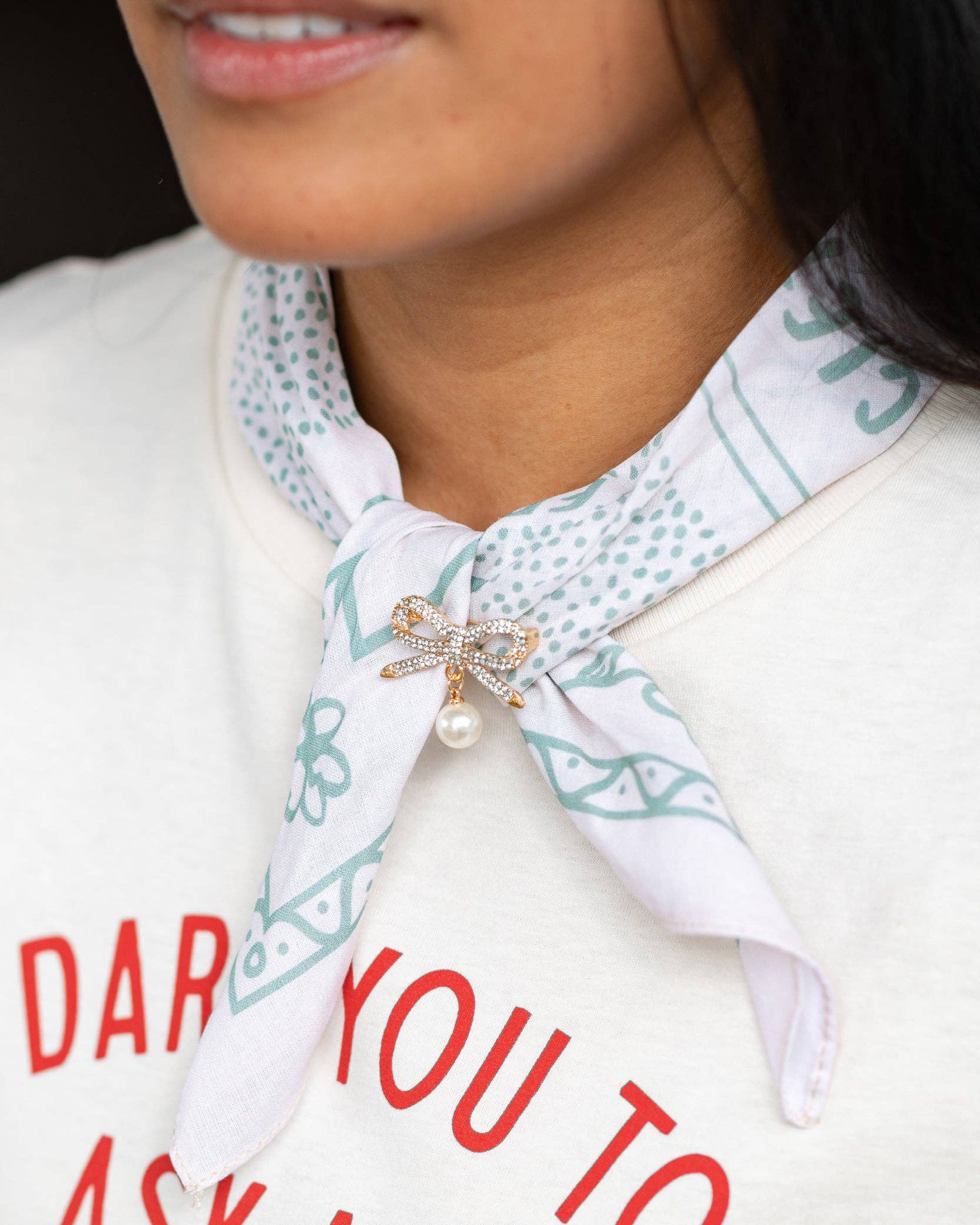 A gentle nod to vintage elegance, this bow-shaped brooch brings soft sophistication to any bandana, blouse, or jacket. Featuring a delicate pearl drop, it’s the kind of piece that feels both classic and personal. Whether you're dressing up a scarf or adding a meaningful touch to your everyday look, this brooch is all about quiet beauty and thoughtful styling. Gold finish. Lightweight with a secure pin clasp. A graceful detail that goes with everything. Perfect for moments big and small—because sometimes the most powerful statement is the one made softly.