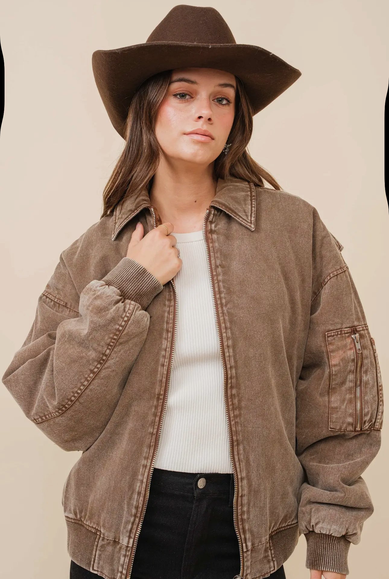 Denim day deserves a refresh with this comfortably oversized bomber jacket that's been acid-washed for retro-inspired allure.