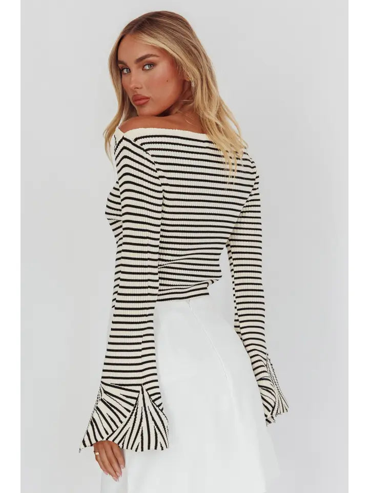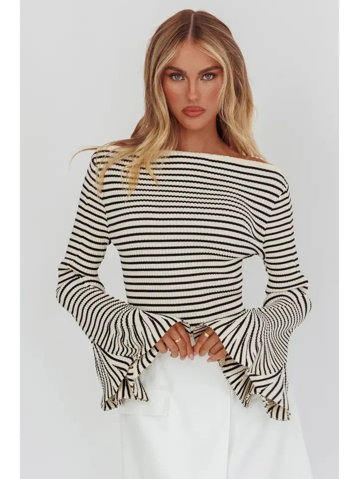 Striped sweater Long sleeve Flared sleeves 95% viscose 5% spandex