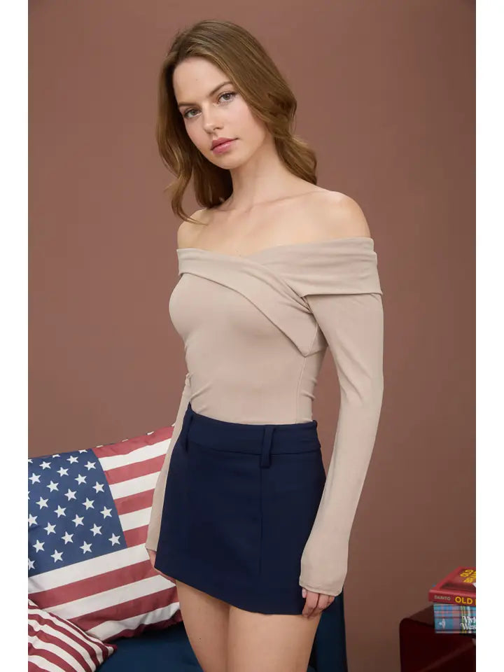 Off the shoulder Long sleeves Wrap detail Solid Not lined Kit top 97%rayon 3%spandex