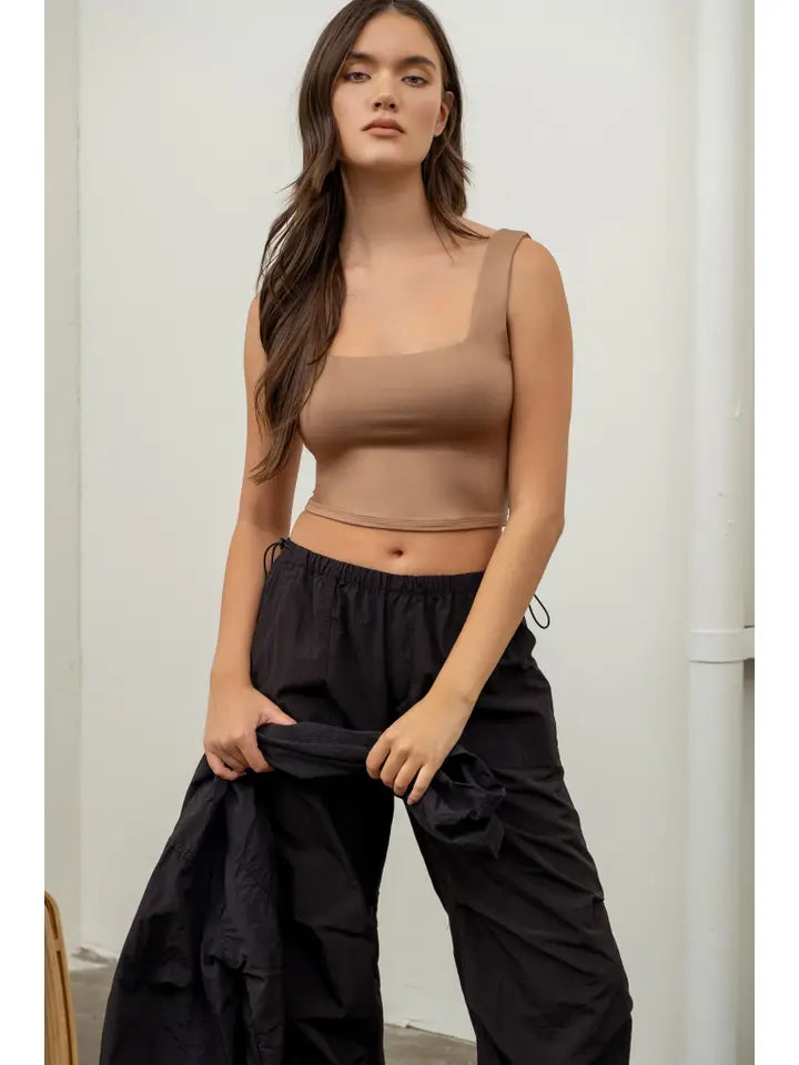 Square neck - Cropped length - Sleeveless - Not lined - 95%polyester 5%spandex
