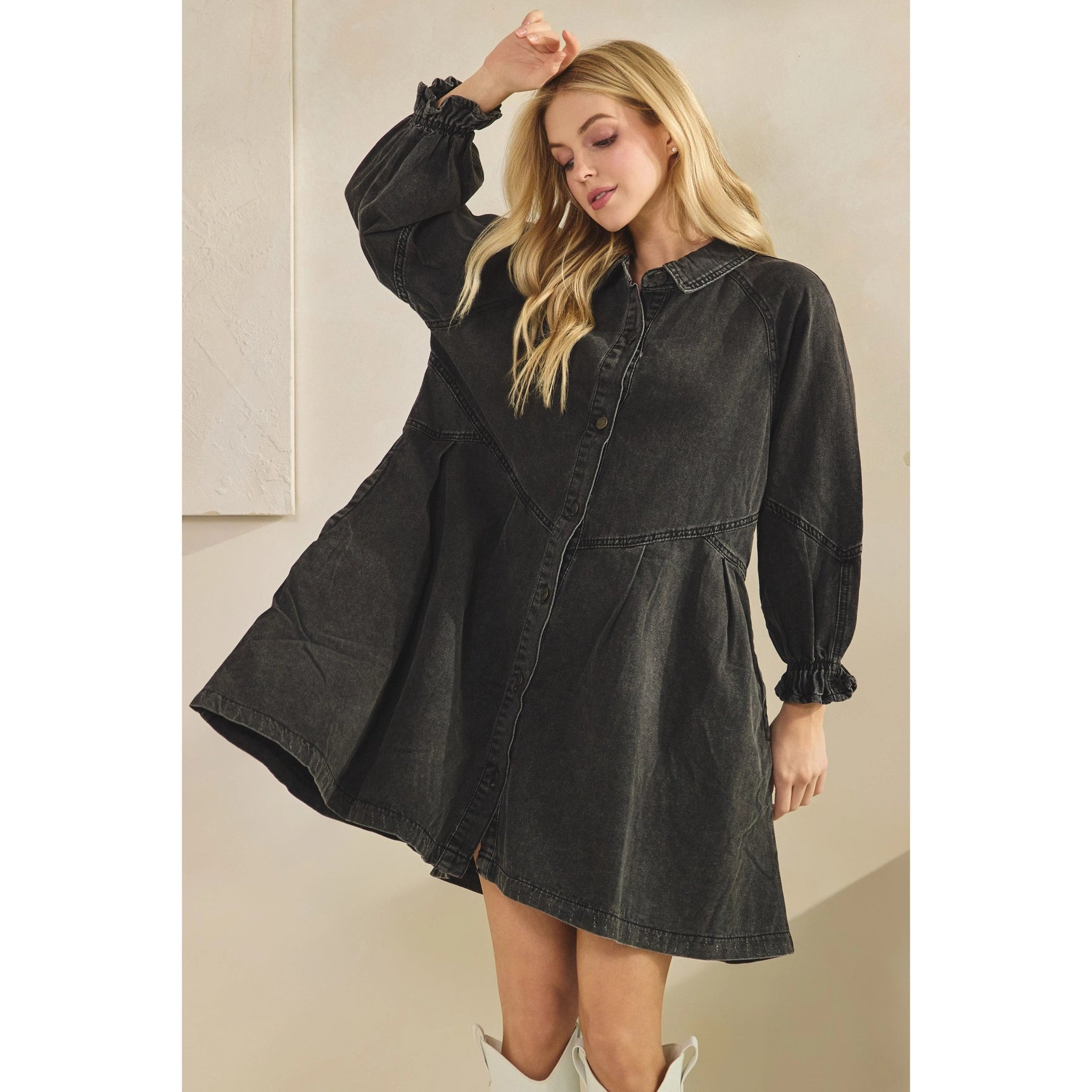 -Shirred button front